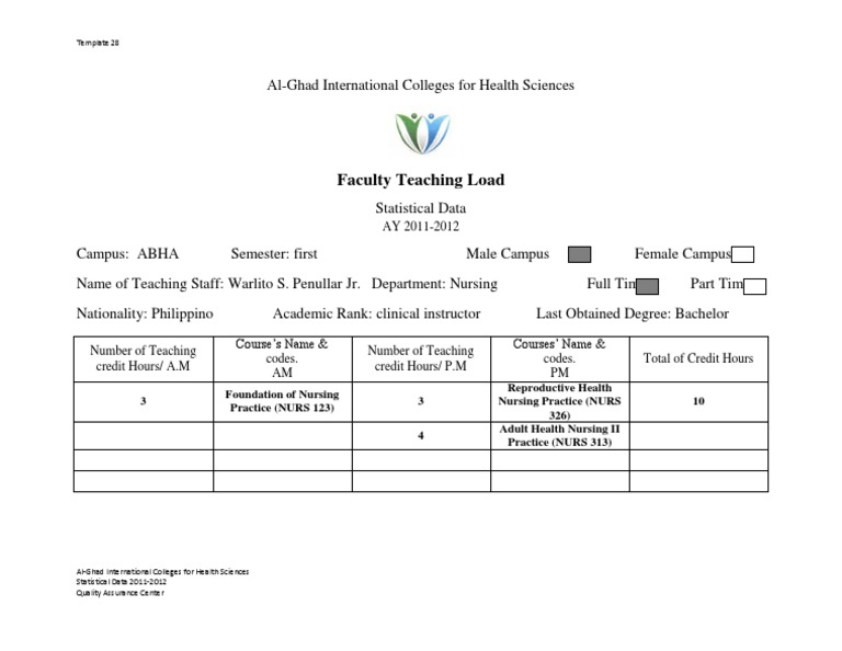 Faculty Teaching Load Template 28