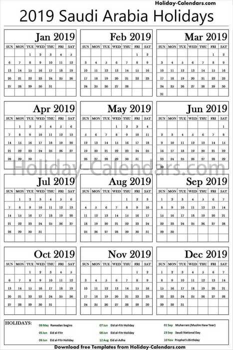 Saudi Arabia Holidays 2019 Holiday Calendar Holiday Calendar Printable Holiday Templates